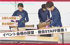 立ち仕事で、歩行が多く、体力が必要な業務になりますので、体力に自信がある方、会場設営撤去経験者大歓迎です!!